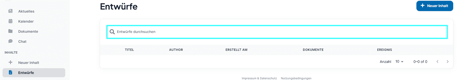 Alle Inhalte werden im Bereich „Entwürfe“ gespeichert, bis sie veröffentlicht werden. Hier können Sie Ihre Artikel und Beiträge sicher aufbewahren und verwalten.